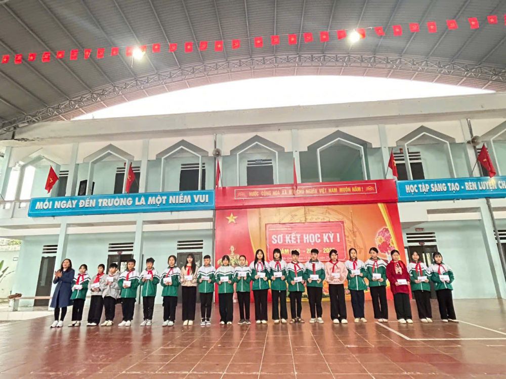 Nhân dịp này, nhà trường đã trao thưởng cho 40 em học sinh có thành tích xuất sắc trong học kỳ I, ghi nhận sự nỗ lực không ngừng của các em trong học tập và rèn luyện.